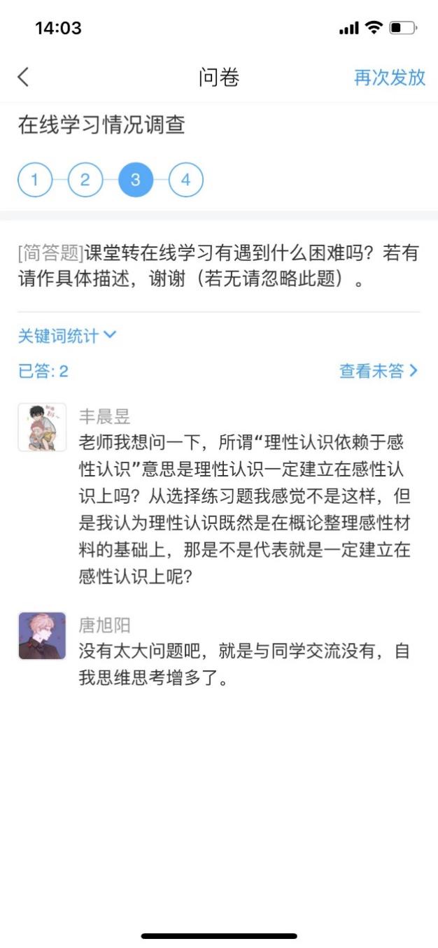 教研室教学资料共享 教师层面各显神通,在线教学互动有声有色 在线教学最终要落实到教师讲课上来,在网络条件下,如何做好实时互动,随时解决员工听课中遇到的问题,考验着马院教师的智慧。思政课教师“各显神通”,大力加强学习互鉴,根据自身实际情况,切实抓好课前准备、课中讲授、课后反馈等环节,创新探索在线教学的有效方式。中国近现代史纲要李天星老师表示线上课程应当根据网络优势加强教学设计,注重问题导向,提前设置高阶性、开放性的讨论题目,教学内容紧密围绕新教材不脱纲,有机融入新表述不模糊,及时关注新变化不滞后,精心打造教学内容保障在线教学质量。毛泽东思想和中国特色社会主义思想概论课程刘铭秋老师作为新进老师,迅速适应在线教学模式,开展“在线多元混合”教学,通过网络直播工具(腾讯会议)与超星学习通相结合的方式,即时与员工进行沟通,最大限度使用超星平台互动功能,通过 “签到”“选人”“抢答”“随堂练习” “主题讨论”等工具深入开展班级互动,通过学习通班级群进行信息反馈,促进实现师生、生生之间的讨论与交流。马克思主义基本原理俞喆老师非常关心员工学习生活,不断给员工打气,做好安抚和疏导,帮助他们尽快适应线上教学,特别注重员工的课堂教学反馈,针对不同员工学习进度灵活安排教学内容,开展“马克思主义原理员工问题集”汇编工作,收集、分享有典型性、可作深入分析的员工问题,用“从员工中来到员工中去”的方法,把原理讲活讲透。公司老师们积极发挥主观能动性,部分老师努力克服网络、设备、环境等条件限制,通过微信、QQ群、学习通、腾讯会议等多种平台,想方设法加强课堂互动,切实提升思政课在线教学活力。