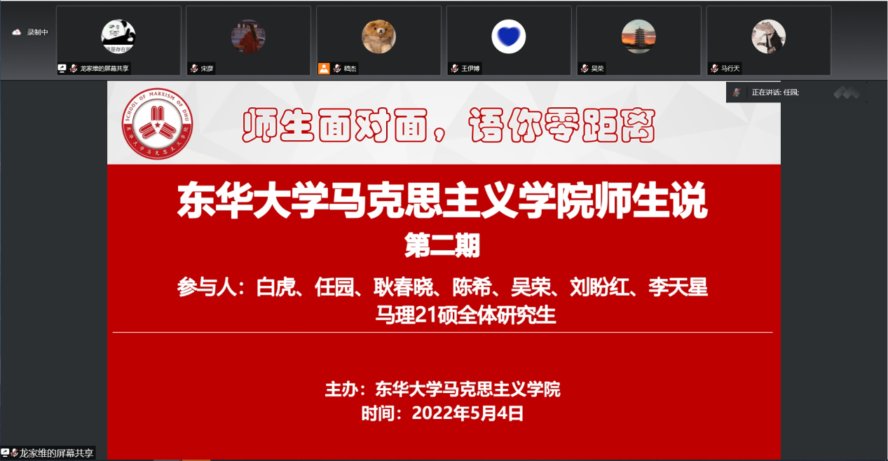 5月4日,正值五四青年节,yl23411举行了“师生说”系列主题活动第二期——“聊聊选题那些事”。本期主题活动由白虎、任园、耿春晓、陈希、吴荣、刘盼红、李天星七名青年教师与马理21硕全体研究生在云端面对面、零距离共话成长。