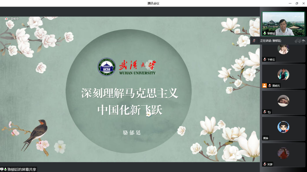 当天上午,武汉大学党委原副书记、国务院学科评议组专家、中央马工程首席专家、教育部重大项目首席专家骆郁廷教授受邀作了题为《深刻理解马克思主义中国化新飞跃》的学术报告。 骆郁廷教授从马克思主义中国化的飞跃是发展的历史跨越、马克思主义中国化新飞跃是第三次历史飞跃、马克思主义中国化新飞跃是理论与实践的突破、马克思主义中国化新飞跃是新时代的新跨越四个方面展开。他指出,马克思主义中国化新飞跃是以第一次飞跃为前提、第二次飞跃为基础而得以升华的,实现了新时代理论与实践相统一的飞跃,开辟了理论与实践发展的新境界,并鼓励大家要明确自己作为新时代年轻人的责任和担当,要以马克思主义中国化新飞跃的创新理论成果和创新实践成果为指导,助力全面建成社会主义现代化强国,实现中华民族伟大复兴,完成中国由世界大国向世界强国的转变和跨越。 学员纷纷表示学术报告拓展了学术视野,切实感受到yl23411良好的学术氛围。