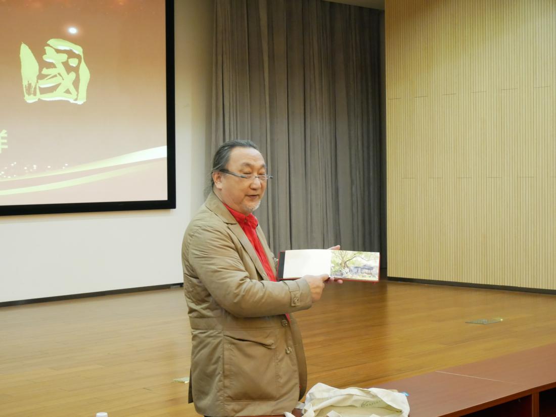 “上善若水。水善利万物而不争,处众人之所恶,故几于道。”水是有生命力而又低调的物质,水彩画以水为媒介,以彩为语义,在水和色彩的相互交融下,世间万物跃然纸上。12月14日,yl23411服装与艺术设计公司教授、博士生导师、全国艺术专业学位研究生教育指导委员会委员冯信群,结合国内外游历写生经历,为同学们带来一场绚丽多彩的水彩艺术盛宴。 冯信群教授从水彩之美、水彩之趣、水彩之意三个方面对水彩艺术进行了阐述。他首先介绍了水彩画的发展起源,水彩画源于欧洲,盛于英国,是一门古老又年轻的艺术,水彩在中国的引入与发展对近代美术的价值观、审美观、方法论产生重要影响,与中国画传统用笔、气韵和意境相融合,蕴含着丰富的中国文化艺术精神,彰显中国气派。 冯信群教授结合自己在长征路、丝绸之路和尼泊尔、土耳其、意大利等国内外地区游历写生时的创作,将一幅幅水彩画背后蕴藏的生动故事娓娓道来。艺术来源于生活,冯老师围绕“艺术融入乡村”话题,生动讲述今年国庆期间在江西创作写生经历,用水彩展现乡间山水风景,将水彩与陶瓷相融合,实现水彩艺术的再创造,分享自己水彩创作的乐趣。
