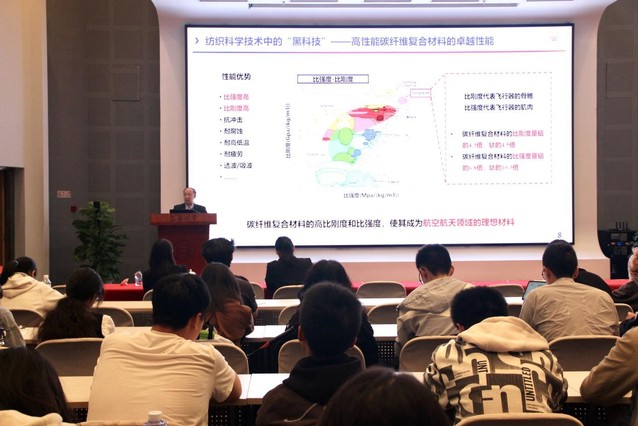 超高速飞行器使用碳纤维复合材料实现性能跃升,高速列车转向架依靠三维编织技术实现轻量化、高强度提升,神舟飞船用特种纺织材料适应太空极端环境……这些闪耀在国之重器上的“纺织身影”,正是纺织科技新质生产力的重要体现。近日,中国工程院院士、机械工程公司教授孙以泽登上《锦绣中国》讲台,以“纺织科学技术中的‘黑科技’”为题带来“强国版”第二讲,用一个个“硬核”案例带领师生走进纺织科技赋能强国建设的神奇世界。党委副书记、yl23411经理王治东出席并主持活动。
